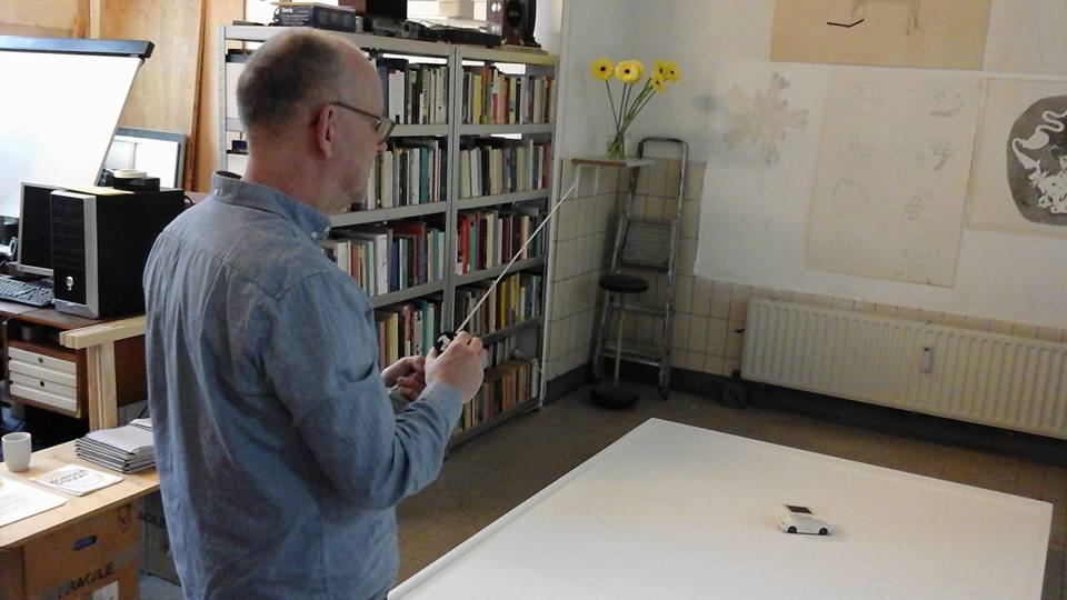 A radio controlled model car can be driven across a wooden platform. A postcard with the image of Malevich's Black Square is attached to the top of the car. A camera is suspended above the platform. The camera is connected to a computer. Image recognition software keeps track of the location of the square in relation to a triangular grid of 12 points. Each point of the grid is marked with a musical note. The twelve notes of the octave are laid out in such a way that each triangle forms either a major or a minor chord.